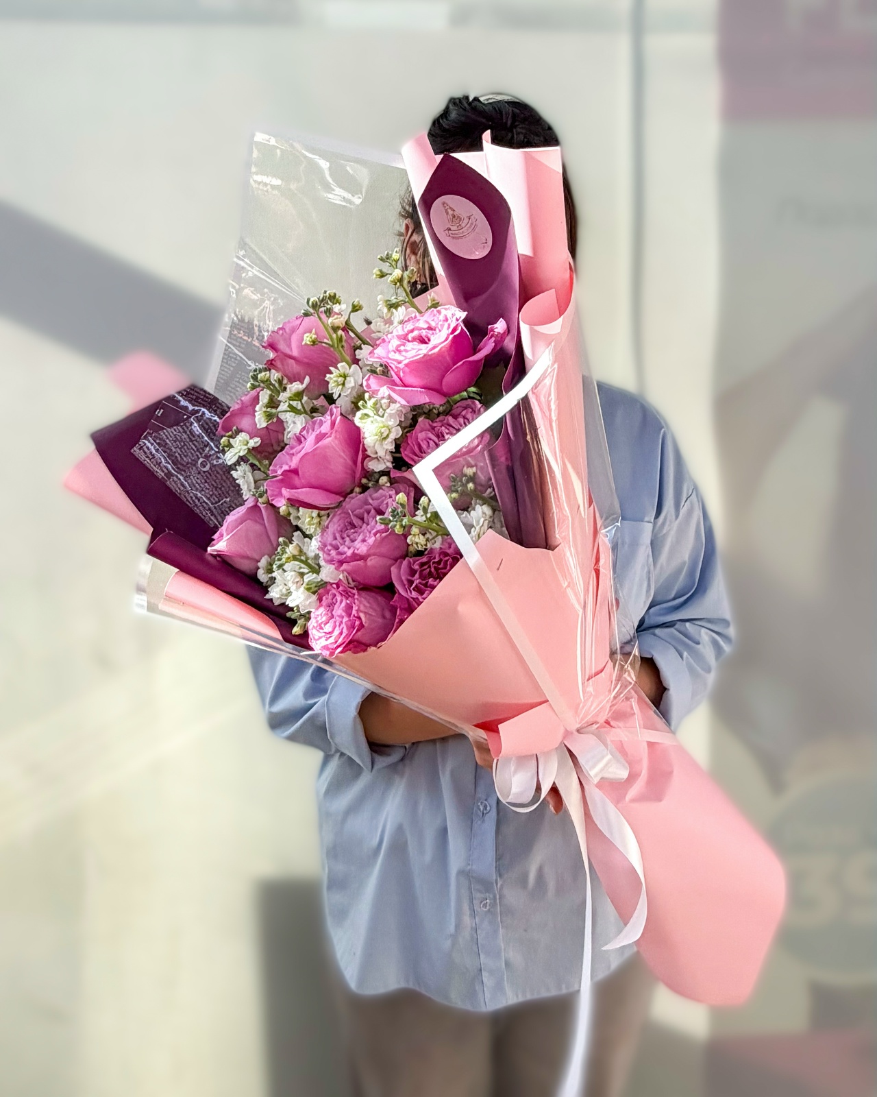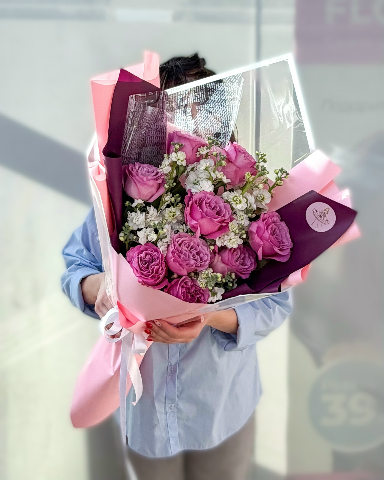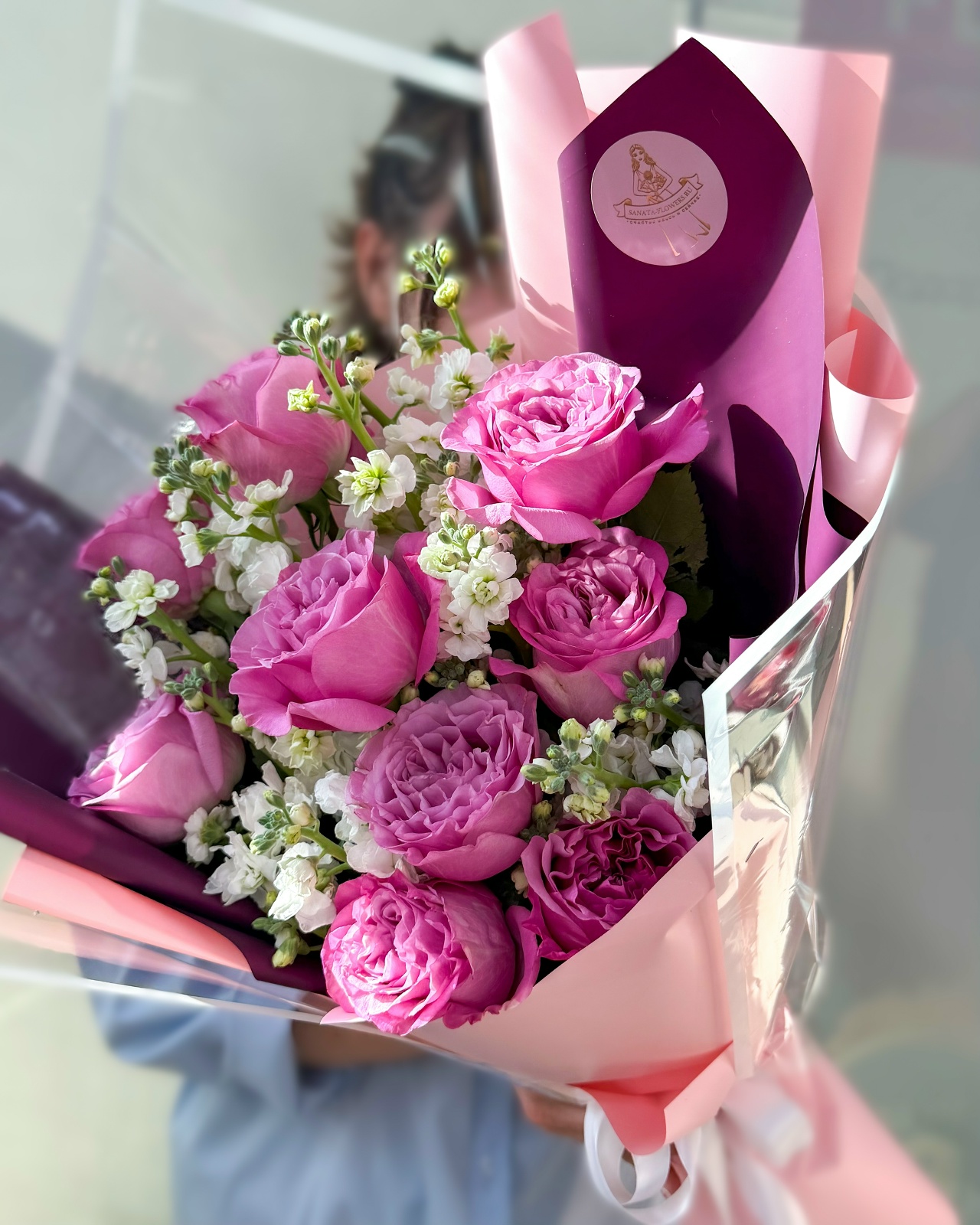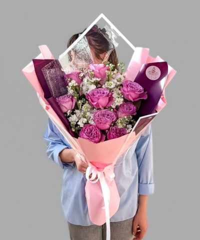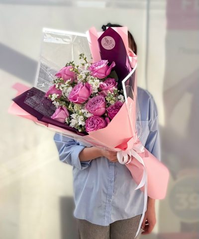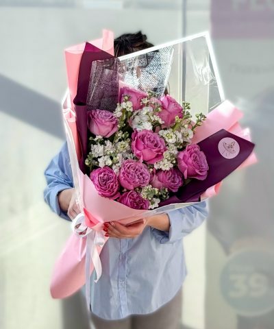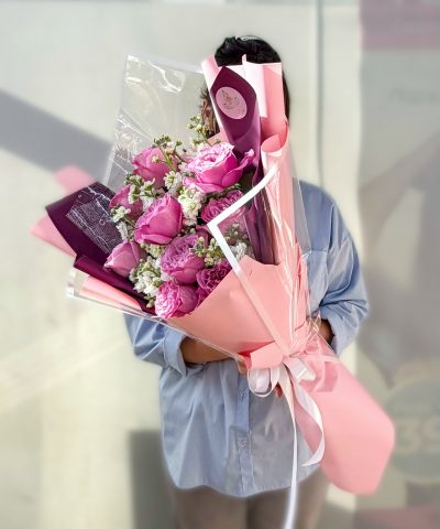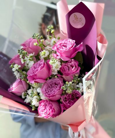 Букет с пионовидной розой и матиолой