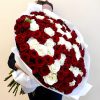 Шикарный букет из высокий роз 101 шт Эквадор красно-белого цвета, высота роз 60 см