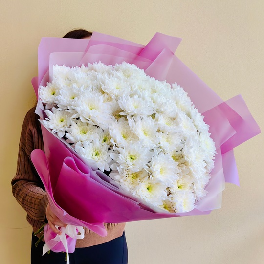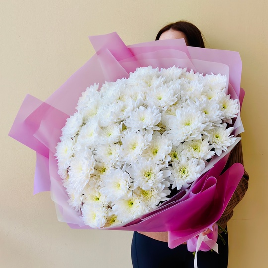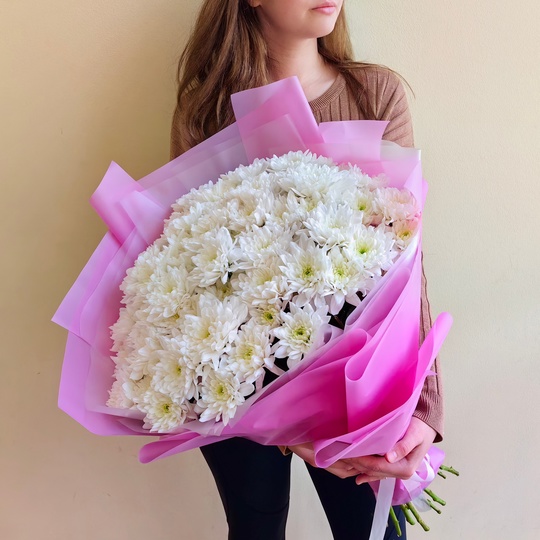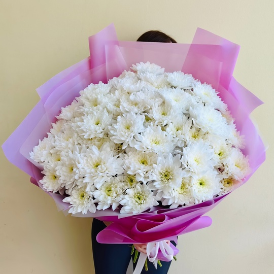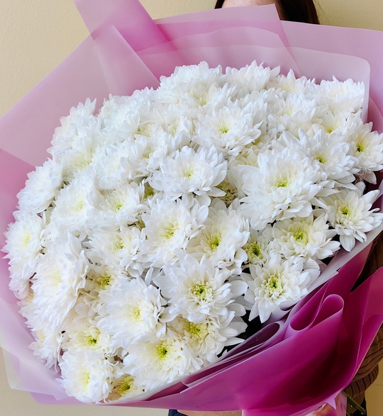 Пышный букет из 13 махровых хризантем🥰🌸 Состав: 15 кустовых махровых хризантем. Размер: диаметр 45 см, высота 60 см — Дизайнерская упаковка — Инструкция по уходу — Средство для продления жизни цветов 2 шт 🌷 Экспресс-доставка 🌷 Кешбэк от суммы заказа 🌷 Открытка в подарок 🌷 Фотоотчет перед отправкой