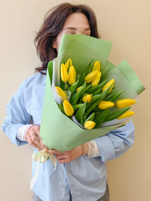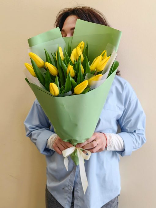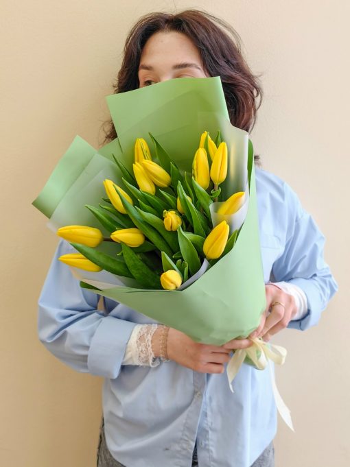 Букет из 15 жёлтых тюльпанов