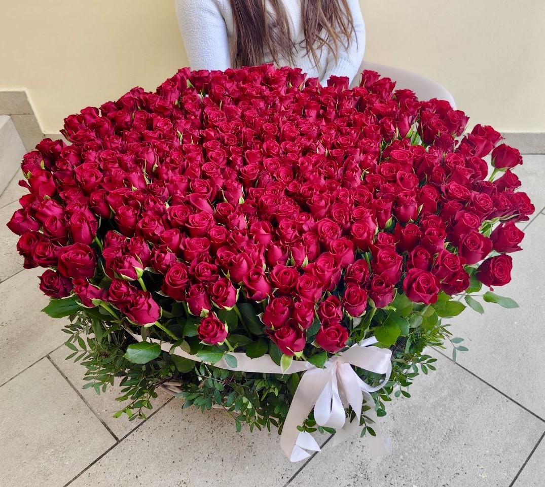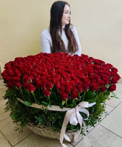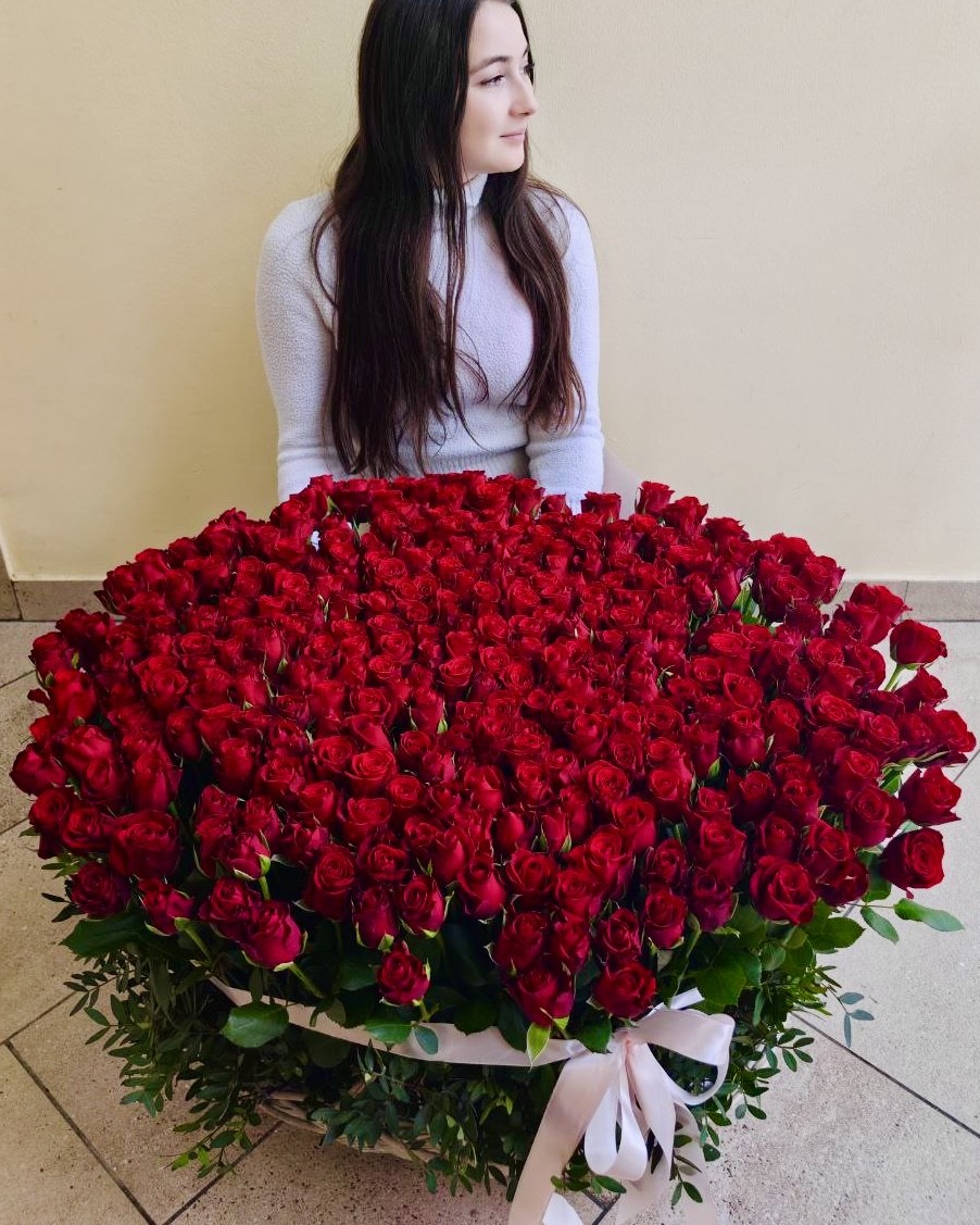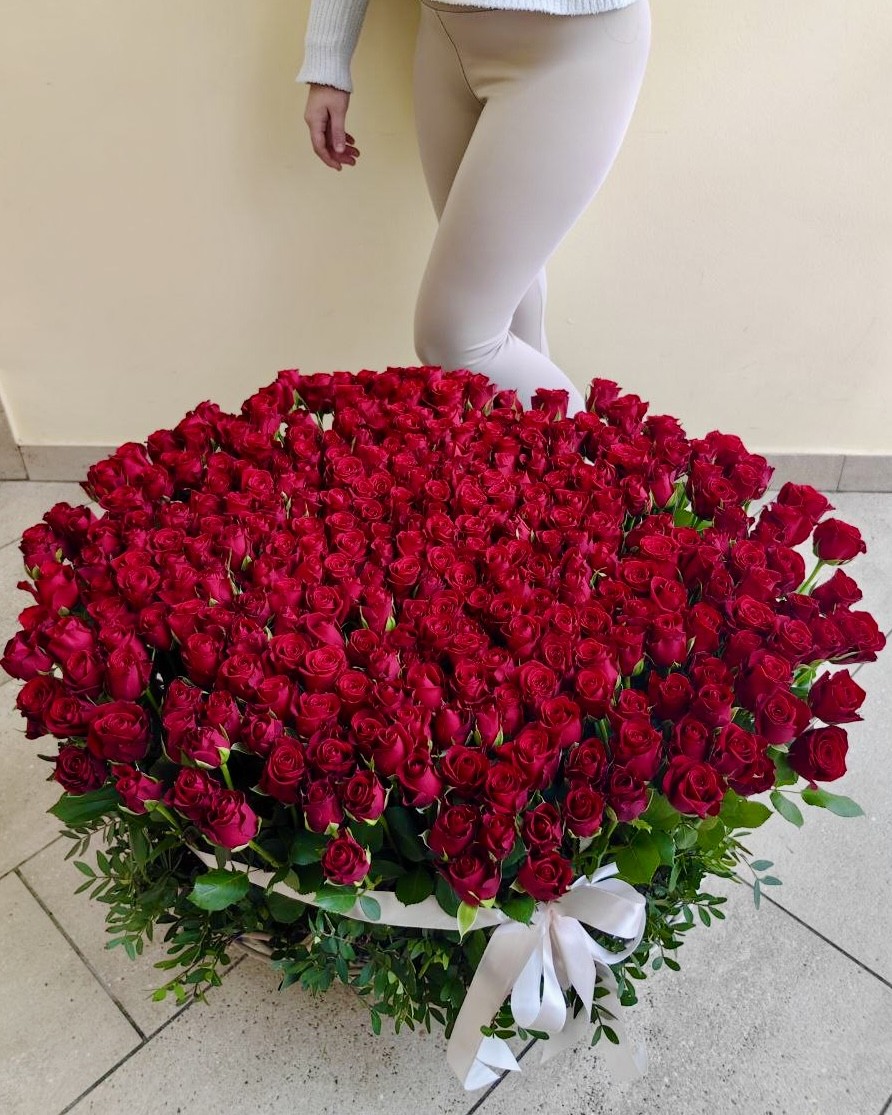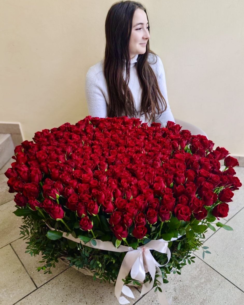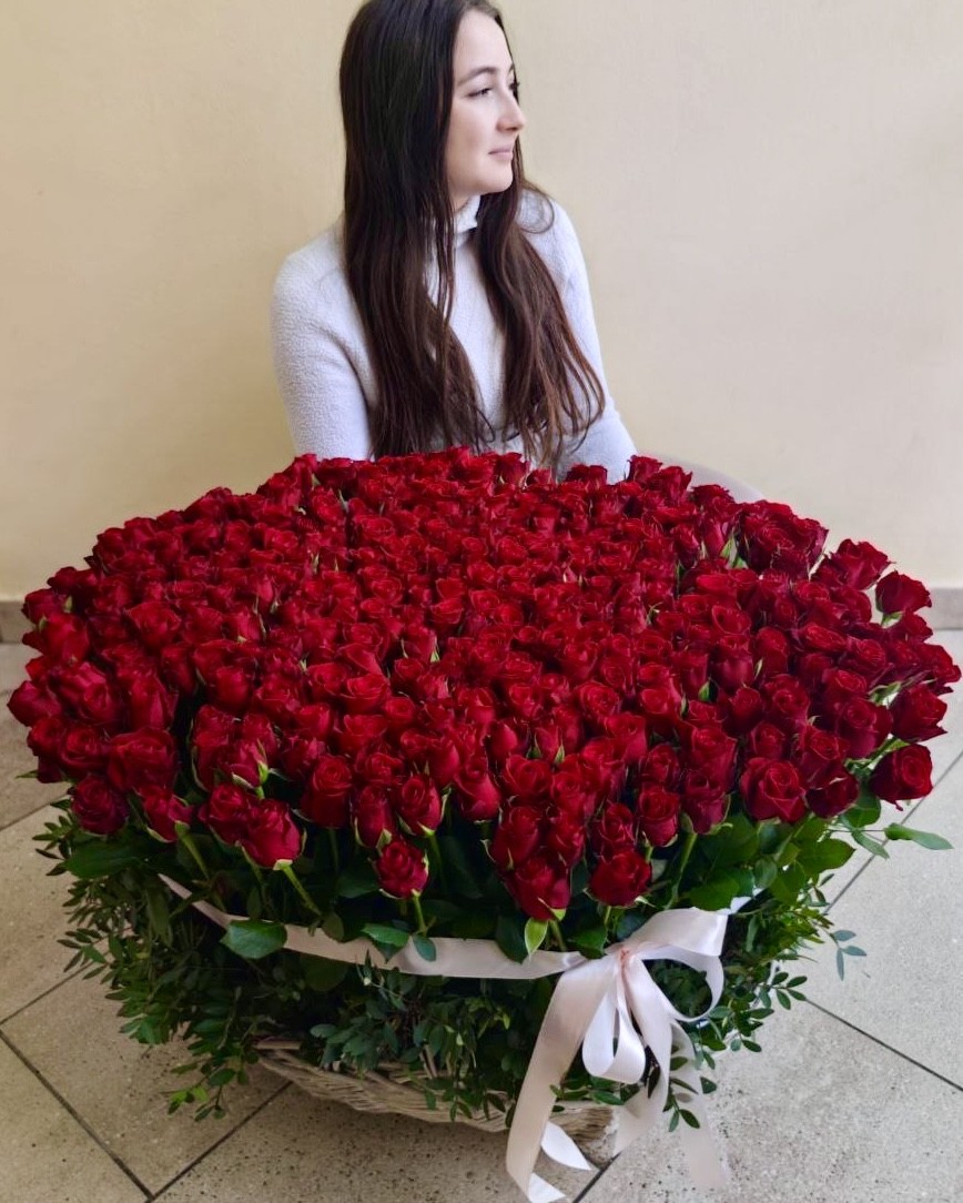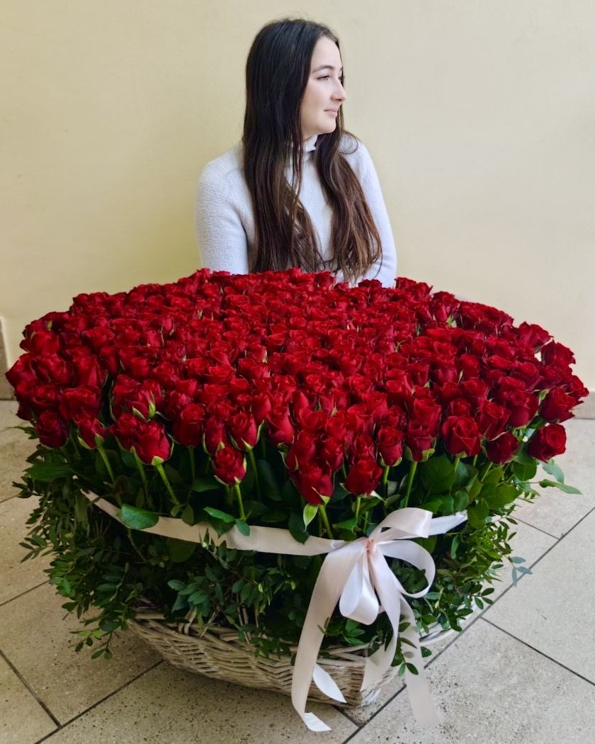 Эффектная корзина из 201 розы 🌹