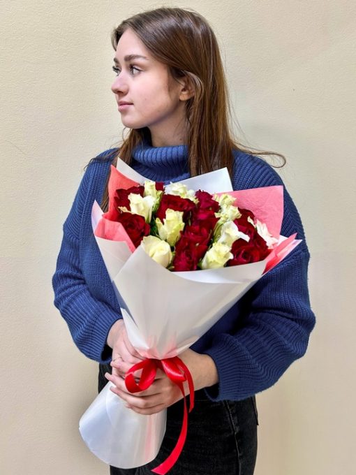 Красивый букет из 25 роз 40 см🌹 – Дизайнерская упаковка – Инструкция по уходу – Средство для продления жизни цветов 2 шт 🌷 Экспресс-доставка 🌷 Кешбэк от суммы заказа 🌷 Открытка в подарок 🌷 Фотоотчет перед отправкой Перед оплатой дождитесь подтверждения флориста. Для оперативности можете перезвонить, работаем для Вас по адресу: Королев, Летная 27а