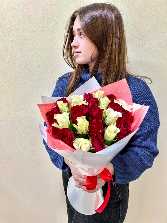 Красивый букет из 25 роз 40 см🌹 — Дизайнерская упаковка — Инструкция по уходу — Средство для продления жизни цветов 2 шт 🌷 Экспресс-доставка 🌷 Кешбэк от суммы заказа 🌷 Открытка в подарок 🌷 Фотоотчет перед отправкой Перед оплатой дождитесь подтверждения флориста. Для оперативности можете перезвонить, работаем для Вас по адресу: Королев, Летная 27а