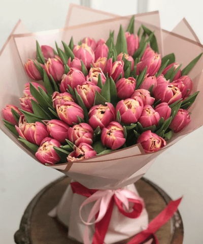 Букет из 25 тюльпанов в стильной упаковке. Перед оплатой дождитесь подтверждения флориста о наличии и стоимости доставки 🌸 Для оперативности можете перезвонить
