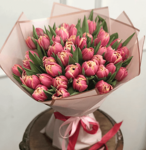 Букет из 35 пионовидных тюльпанов в стильной упаковке.