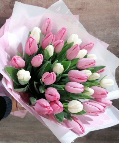 Букет тюльпанов в стильной упаковке. Перед оплатой дождитесь подтверждения флориста о наличии и стоимости доставки 🌸 Для оперативности можете перезвонить