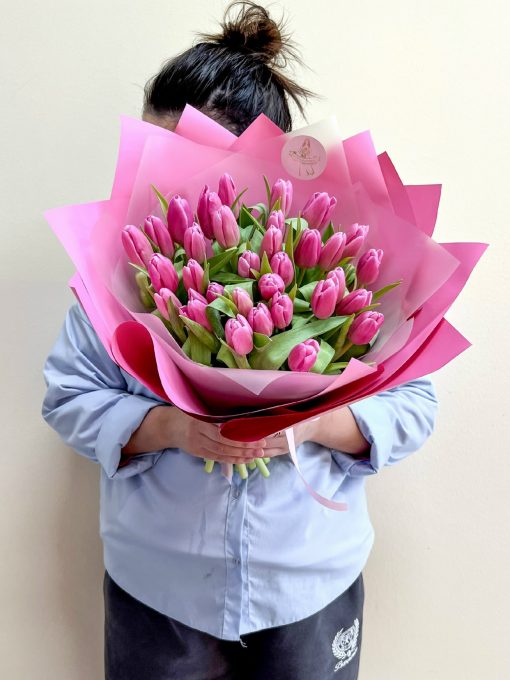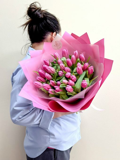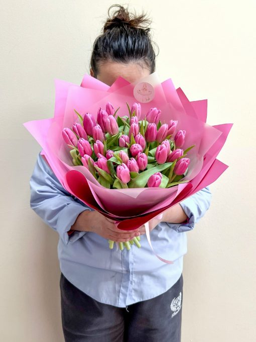 Букет из 35 штук розовых тюльпанов