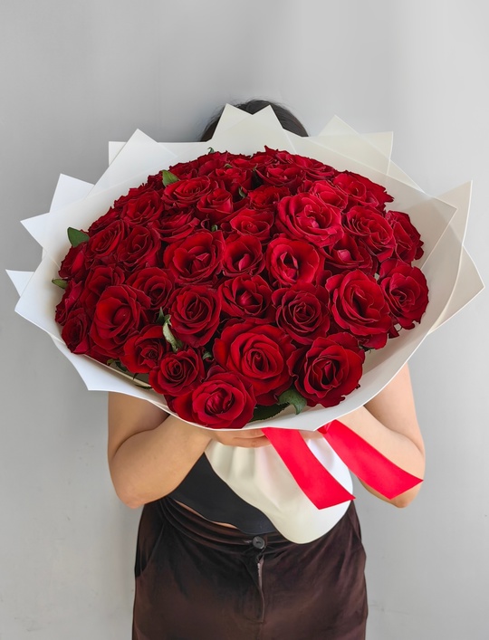 Букет из 51 бордовой розы премиум🌹 Ширина 45 см, высота 40см В подарок: — Дизайнерская упаковка — Инструкция по уходу — Средство для продления жизни цветов 2 шт 🌷 Экспресс-доставка 🌷 Кешбэк от суммы заказа 🌷 Открытка в подарок 🌷 Фотоотчет перед отправкой