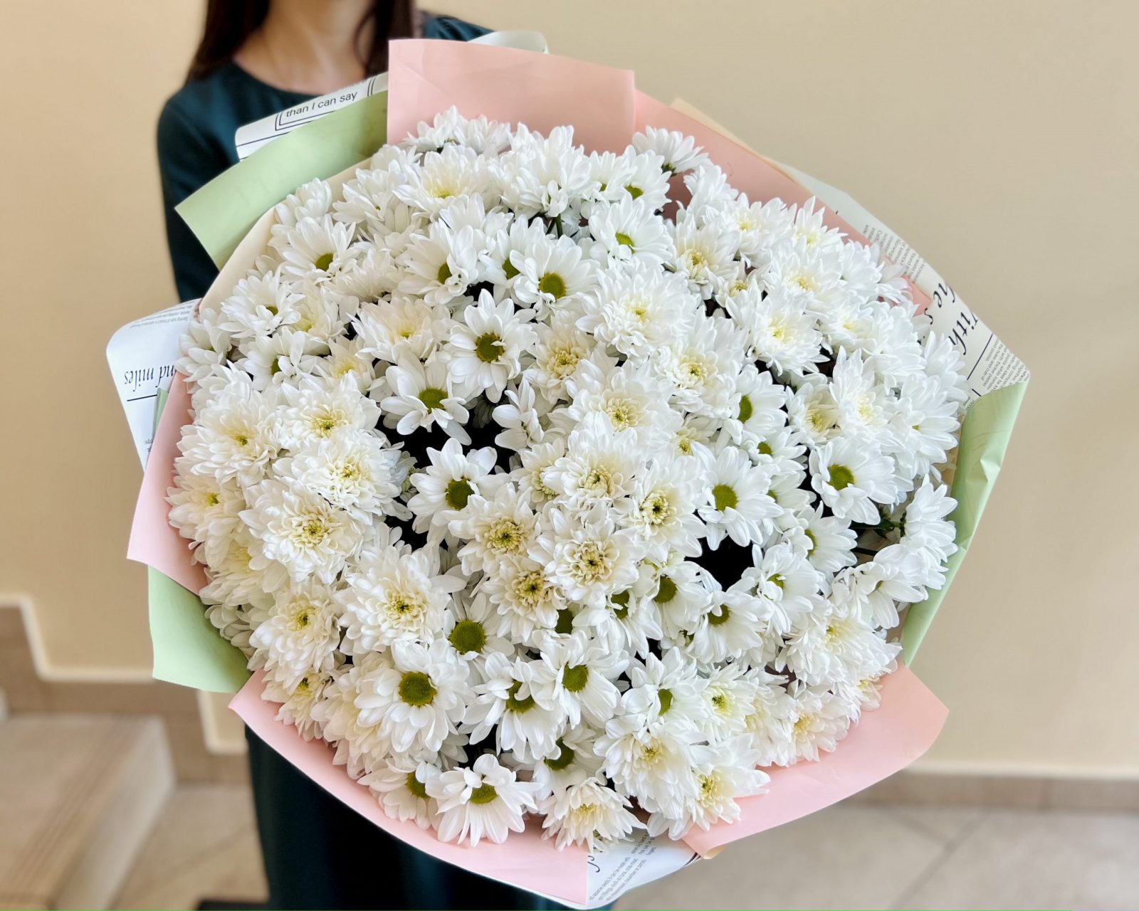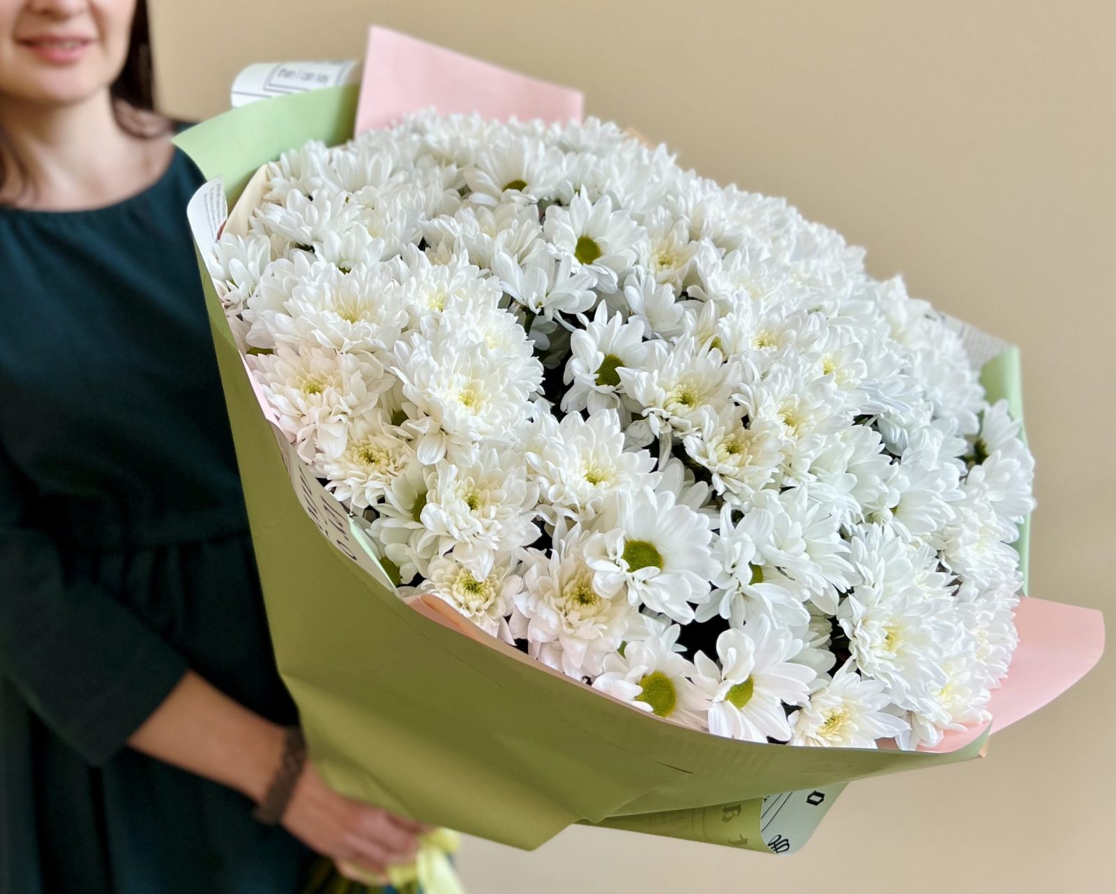 Огромный букет из 51 стойких кустовых хризантем. Букет может быть выполнен в разных цветовых вариациях по вашему желанию!