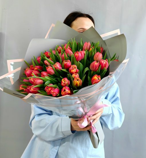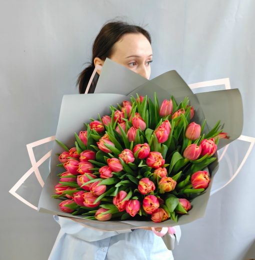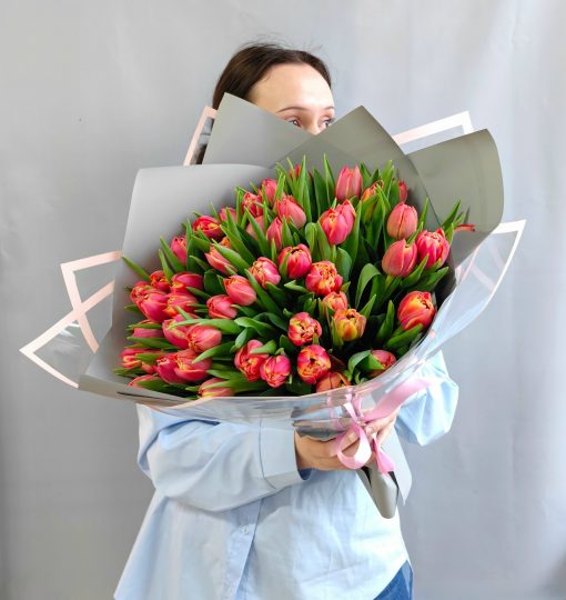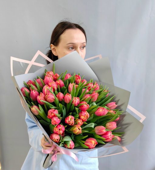 Букет из 51 пионовидного тюльпана в стильной упаковке🌷