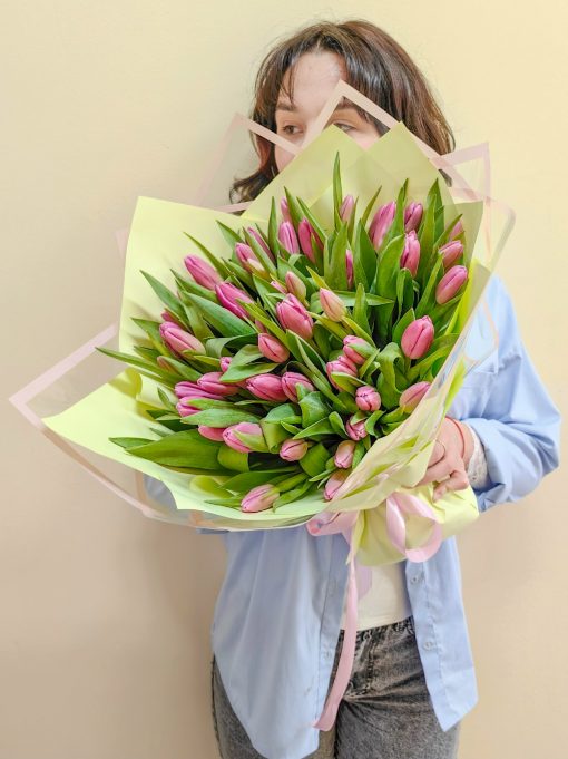 Букет из 51 розового тюльпана