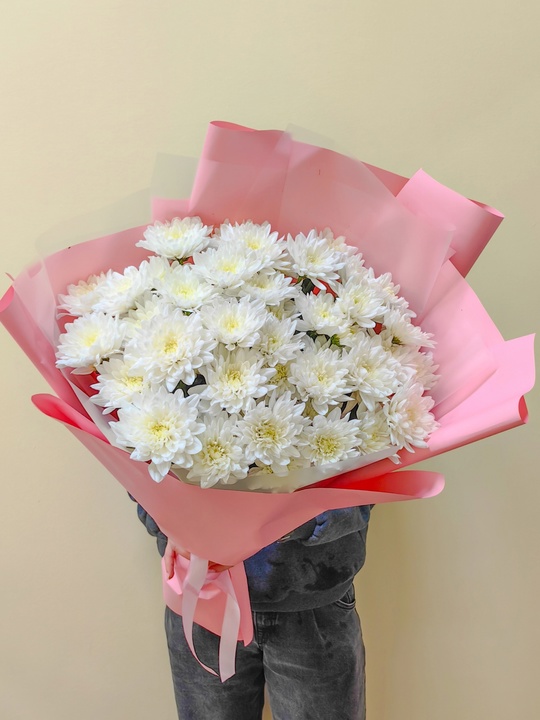 Букет из 9 кустовых хризантем — Дизайнерская упаковка — Инструкция по уходу — Средство для продления жизни цветов 2 шт 🌷 Экспресс-доставка 🌷 Кешбэк от суммы заказа 🌷 Открытка в подарок 🌷 Фотоотчет перед отправкой