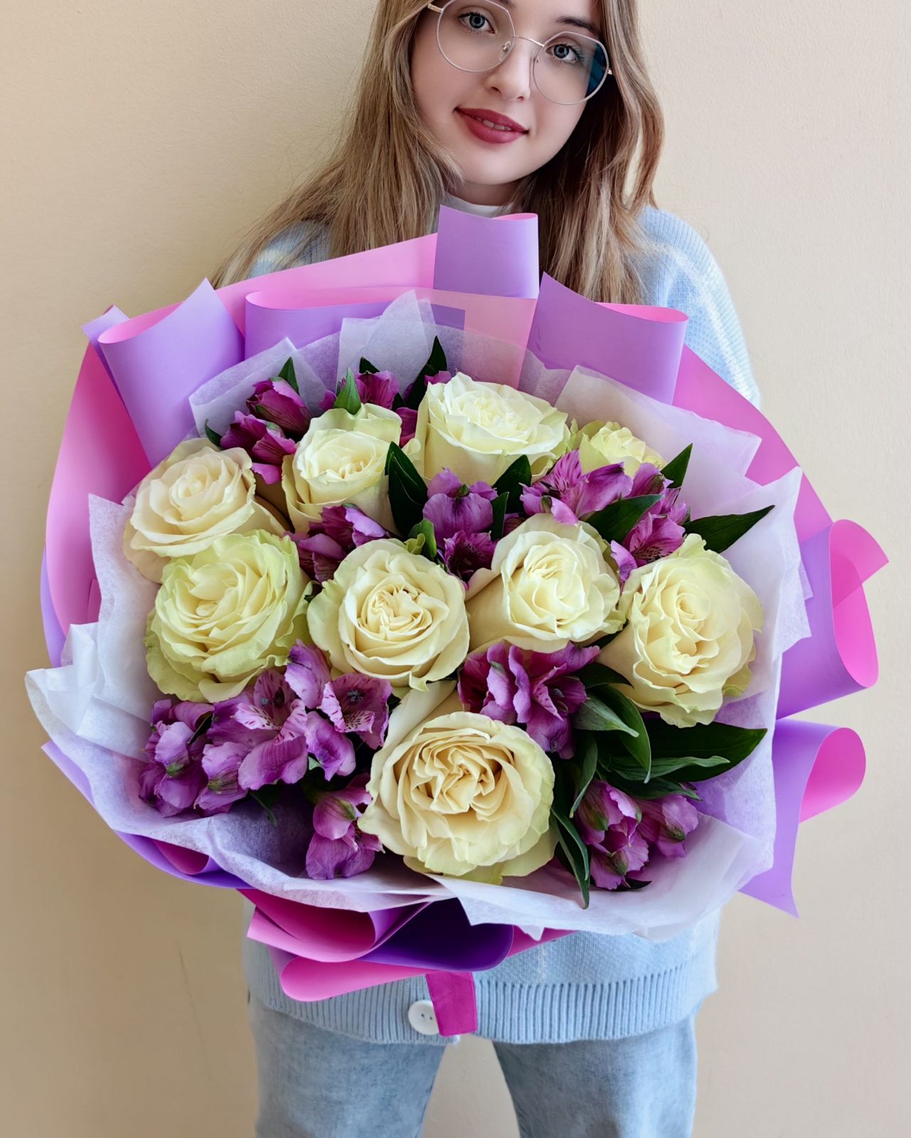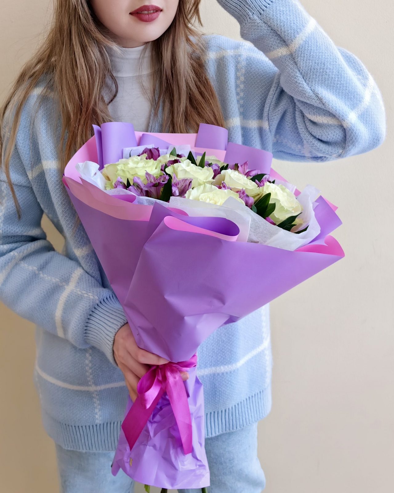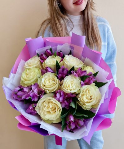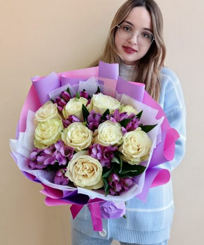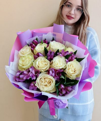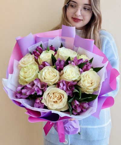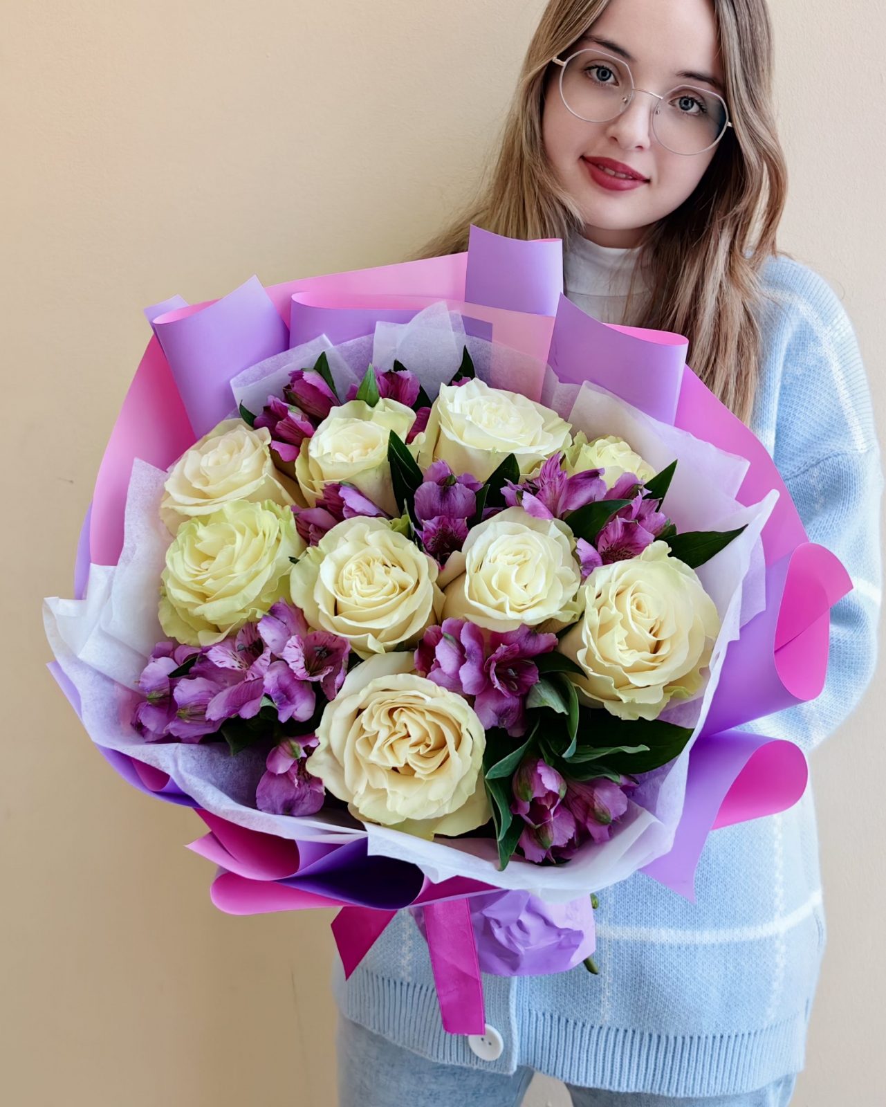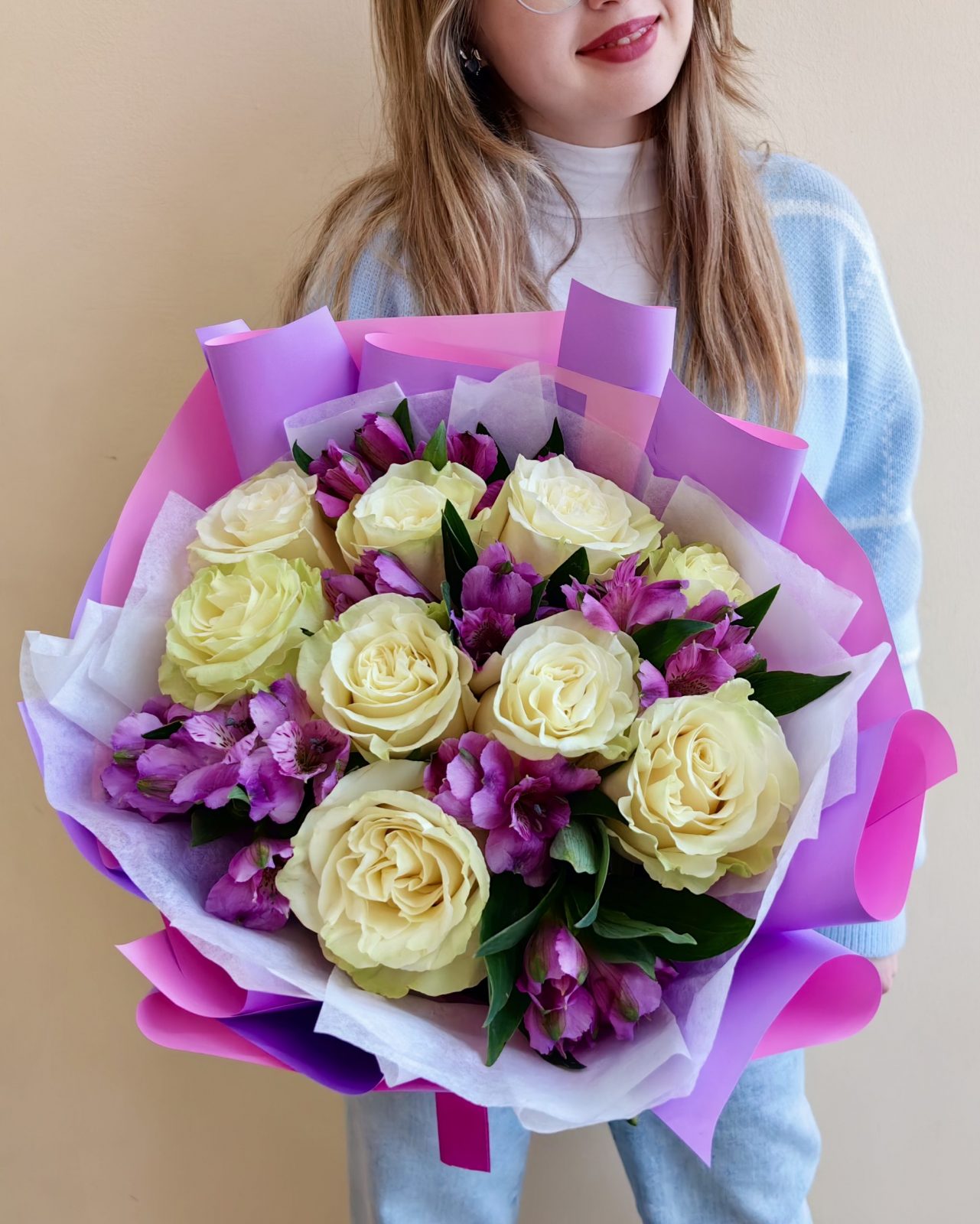 Категорий: 14 февраля, Белые розы, Букет из Альстромерий с доставкой, День матери, Розы, Хиты продаж
