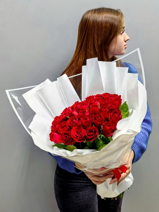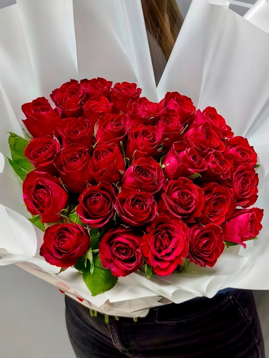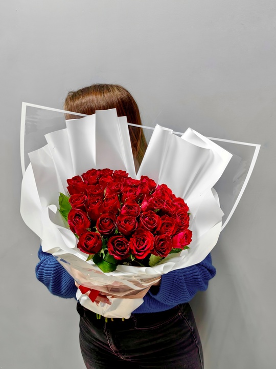 Букет 35 бордовых роз🌹 — Дизайнерская упаковка — Инструкция по уходу — Средство для продления жизни цветов 2 шт 🌷 Экспресс-доставка 🌷 Кешбэк от суммы заказа 🌷 Открытка в подарок 🌷 Фотоотчет перед отправкой