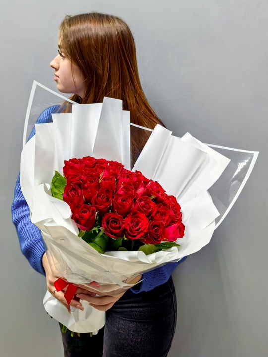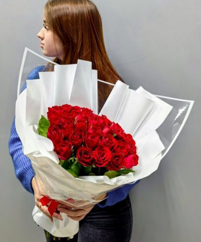 Букет 35 красных роз 40см