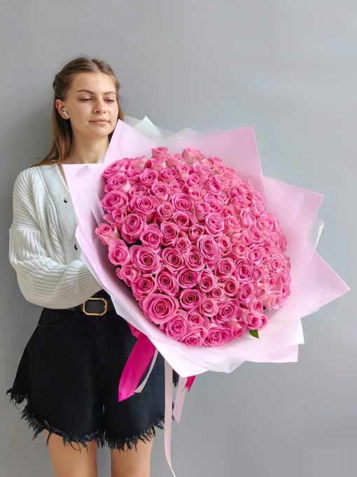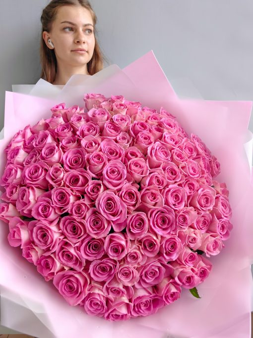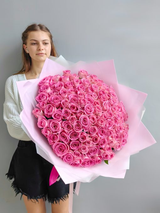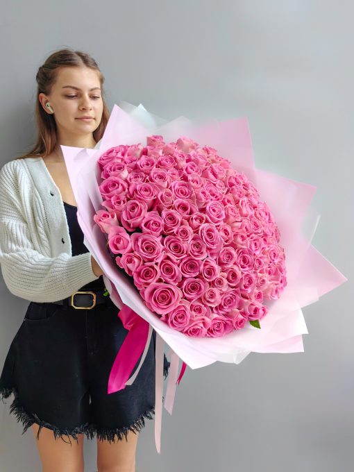 Букет из 101 розовой розы 40 см