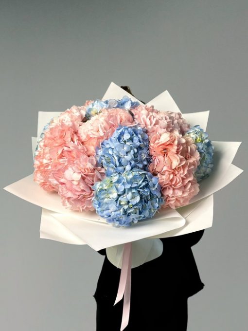 укет из 15 гортензий В подарок: – Дизайнерская упаковка – Инструкция по уходу – Средство для продления жизни цветов 2 шт 🌷 Экспресс-доставка 🌷 Кешбэк от суммы заказа 🌷 Открытка в подарок 🌷 Фотоотчет перед отправкой