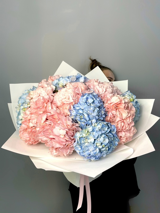 укет из 15 гортензий В подарок: — Дизайнерская упаковка — Инструкция по уходу — Средство для продления жизни цветов 2 шт 🌷 Экспресс-доставка 🌷 Кешбэк от суммы заказа 🌷 Открытка в подарок 🌷 Фотоотчет перед отправкой