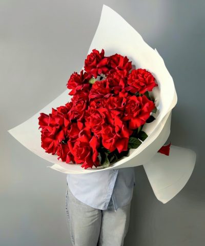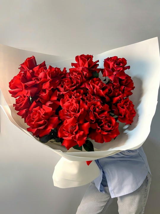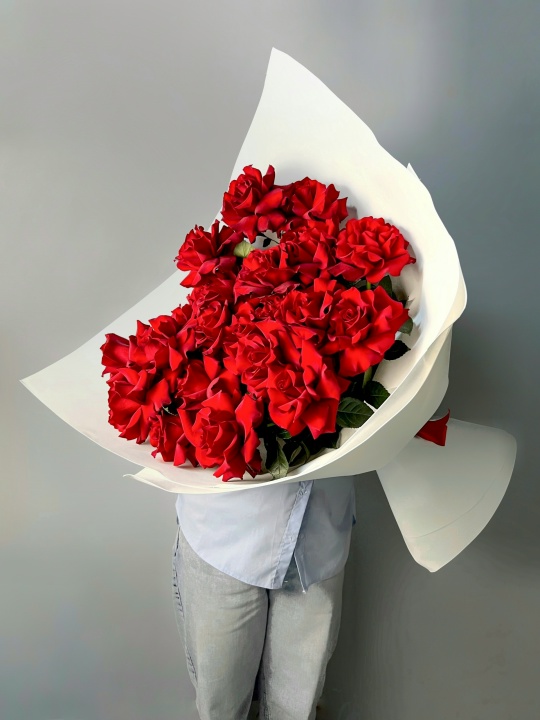 Букет из 25 шикарных французских роз😍🌹 Ширина 65 см, высота 50 см В подарок: — Дизайнерская упаковка — Инструкция по уходу — Средство для продления жизни цветов 2 шт 🌷 Экспресс-доставка 🌷 Кешбэк от суммы заказа 🌷 Открытка в подарок 🌷 Фотоотчет перед отправкой