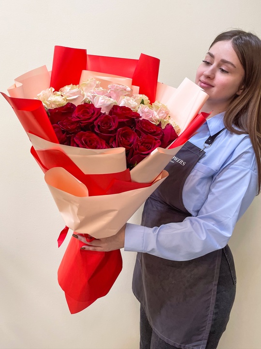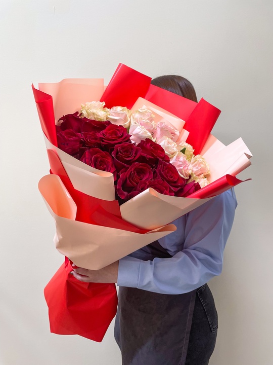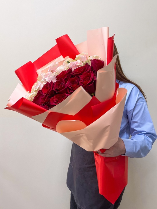 Букет из 25 роз 50см🌹 В подарок: — Дизайнерская упаковка — Инструкция по уходу — Средство для продления жизни цветов 2 шт 🌷 Экспресс-доставка 🌷 Кешбэк от суммы заказа 🌷 Открытка в подарок 🌷 Фотоотчет перед отправкой
