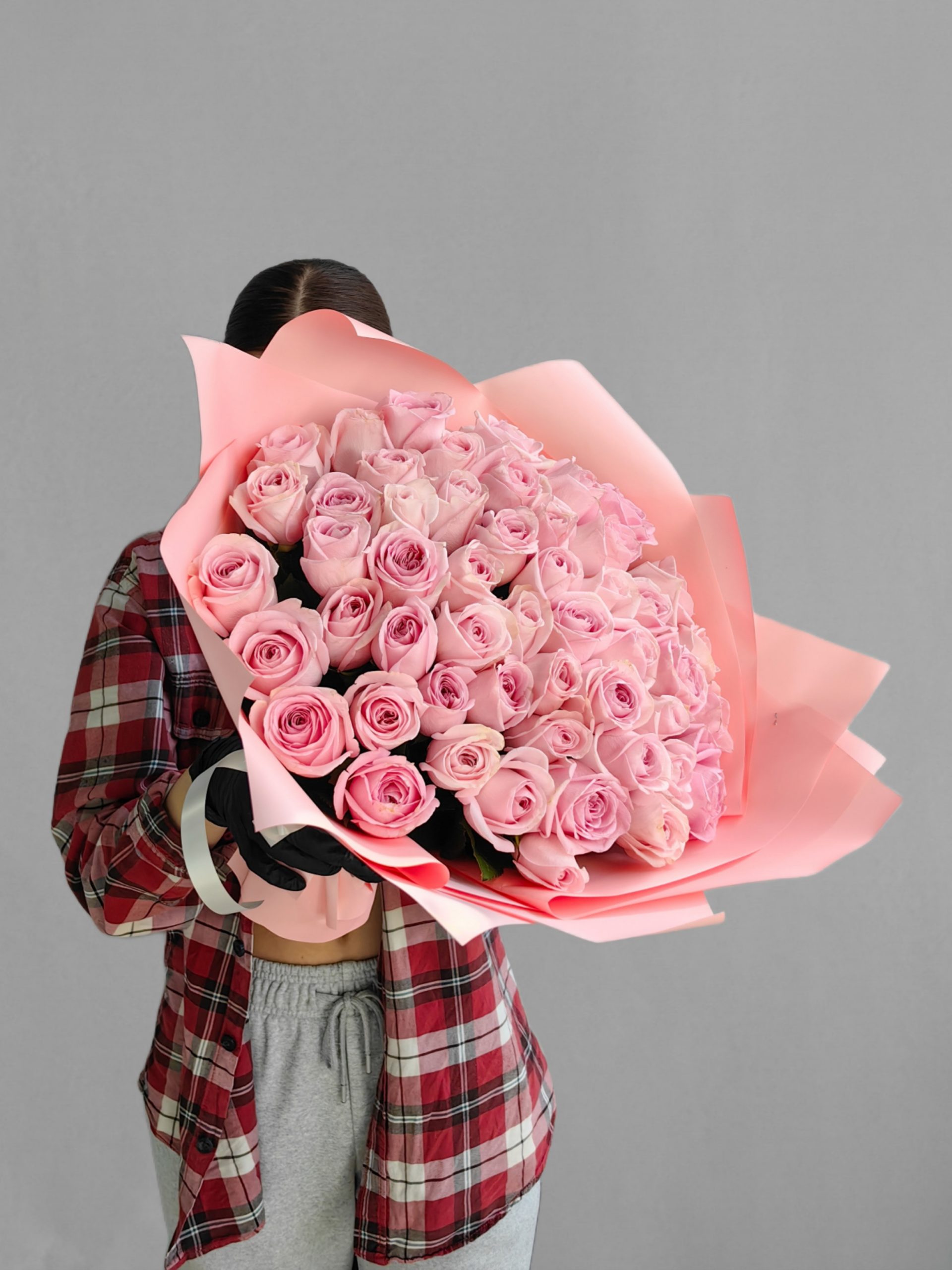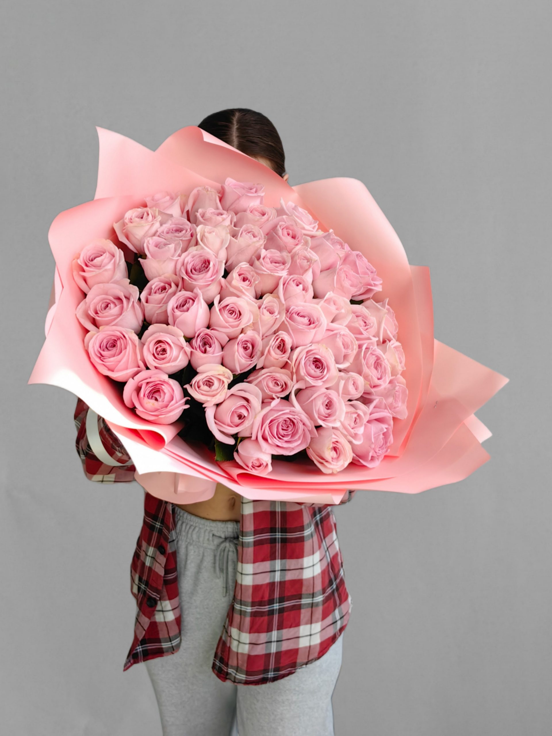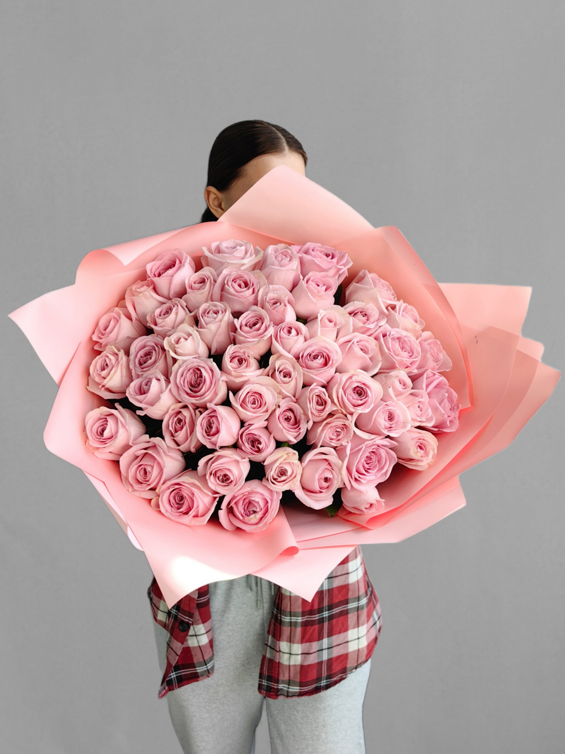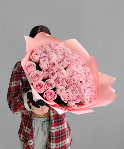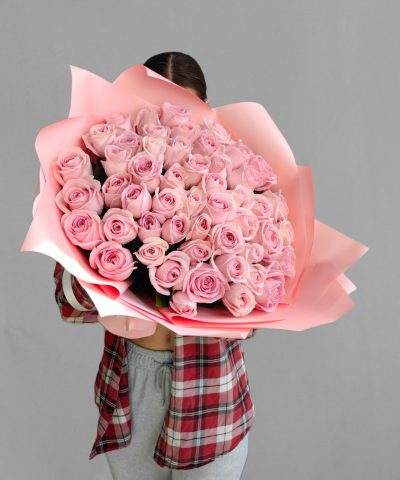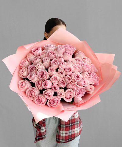 Букет розовых роз из горной Кении. 51 шт.