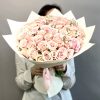 Букет из 51 розовой розы с 2 веточками гипсофилы