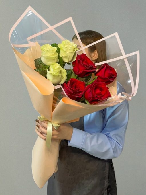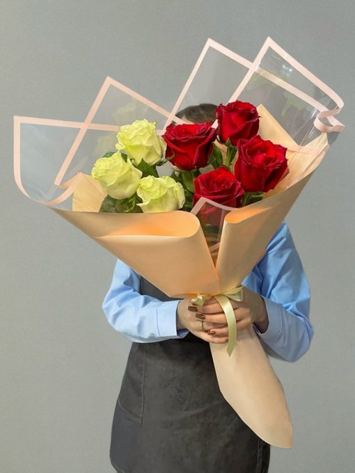 Букет из 7 роз Эквадор 50см🌹 В составе: Белые розы 3 шт и красные розы 4шт В подарок: – Дизайнерская упаковка – Инструкция по уходу – Средство для продления жизни цветов 2 шт 🌷 Экспресс-доставка 🌷 Кешбэк от суммы заказа 🌷 Открытка в подарок 🌷 Фотоотчет перед отправкой