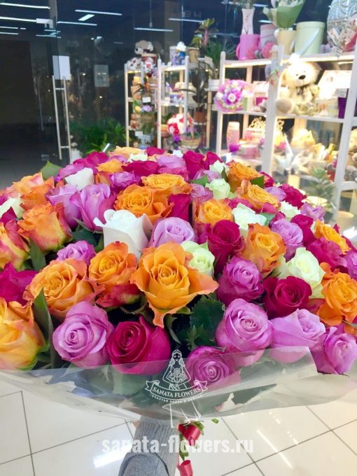 Букет из 75 разноцветных роз 40 см