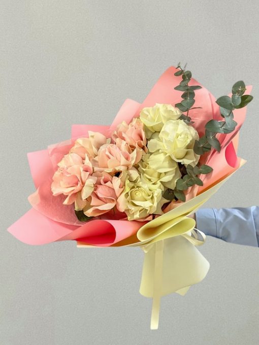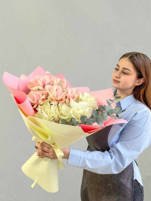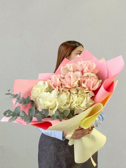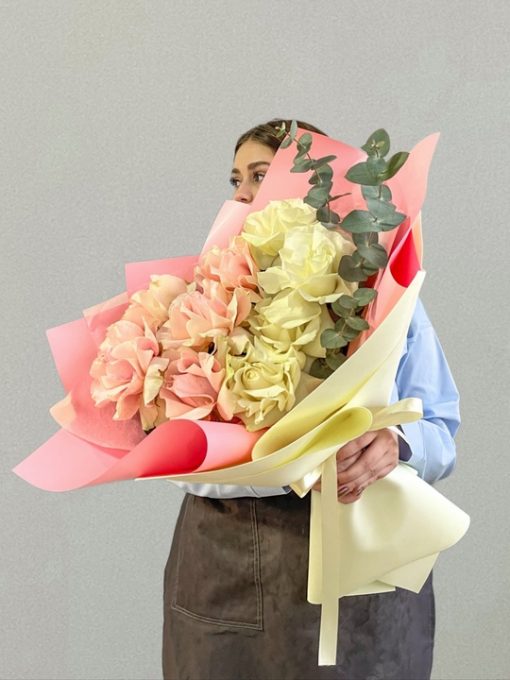 Букет из 9 французских роз Эквадор с эвкалиптом🌹🌿 В составе: Белая Французская роза 4 шт и розовая Французская роза 5 шт Эвкалипт Стильная упаковка В подарок: – Дизайнерская упаковка – Инструкция по уходу – Средство для продления жизни цветов 2 шт 🌷 Экспресс-доставка 🌷 Кешбэк от суммы заказа 🌷 Открытка в подарок 🌷 Фотоотчет перед отправко