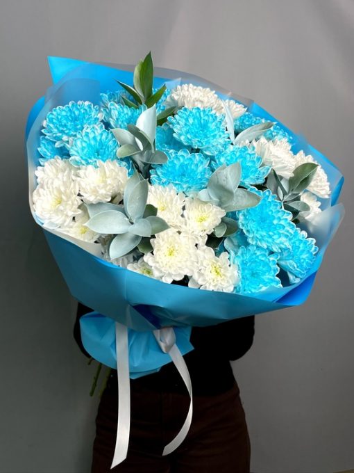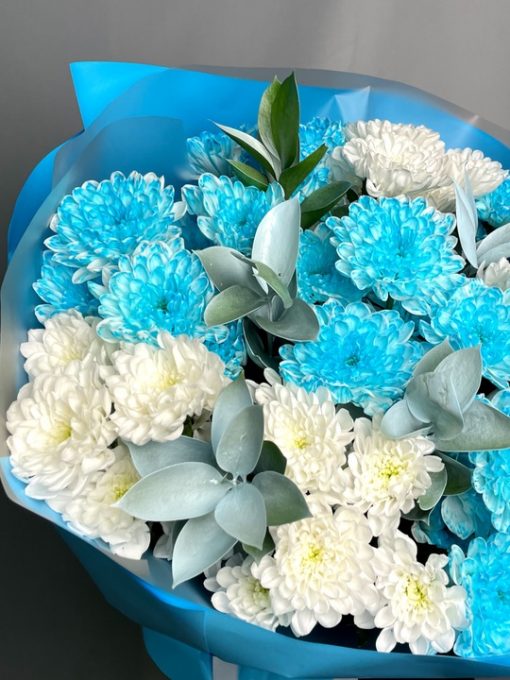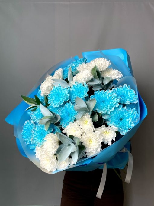 Букет из хризантем и рускуса В составе: Хризантема 9 шт Рускус 6 шт Упаковка В подарок: – Дизайнерская упаковка – Инструкция по уходу – Средство для продления жизни цветов 2 шт 🌷 Экспресс-доставка 🌷 Кешбэк от суммы заказа 🌷 Открытка в подарок 🌷 Фотоотчет перед отправкой