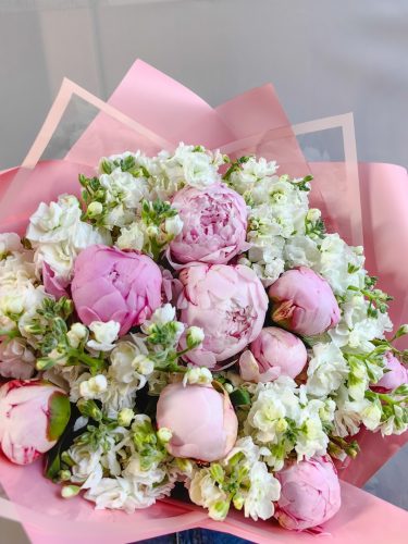 Букет из пионов и маттиолы