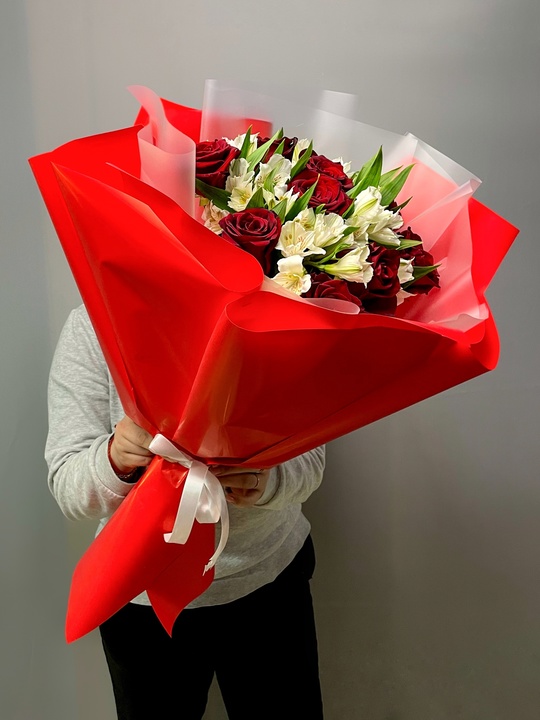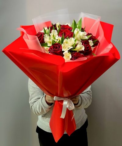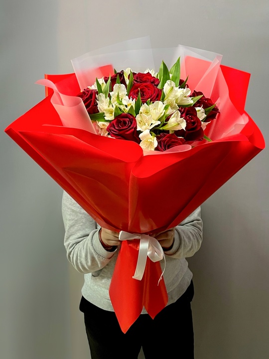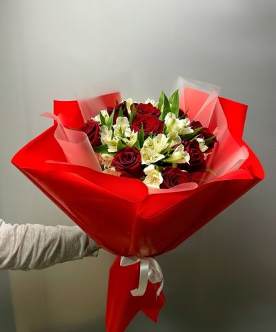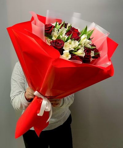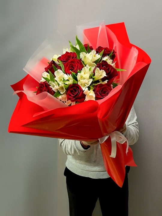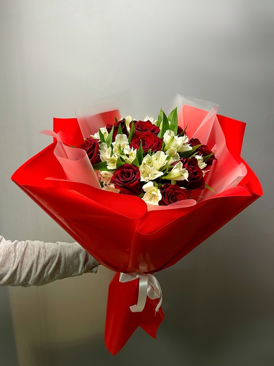 Букет из роз и альстромерий