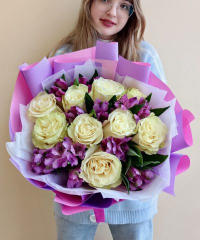 Букет «Тёплые объятия» В составе: Диантус 3 шт Гортензия 1 шт Роза Эквадор 50см 7 шт Рускус 3 шт Пистация Ширина 54 см, высота 50 см В подарок: – Дизайнерская упаковка – Инструкция по уходу – Средство для продления жизни цветов 2 шт 🌷 Экспресс-доставка 🌷 Кешбэк от суммы заказа 🌷 Открытка в подарок 🌷 Фотоотчет перед отправкой