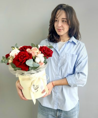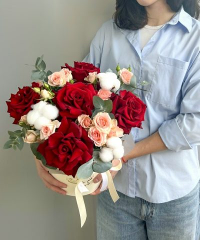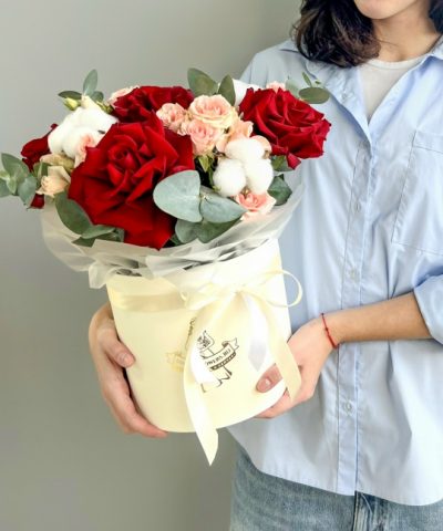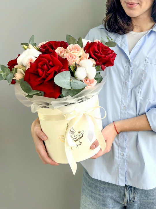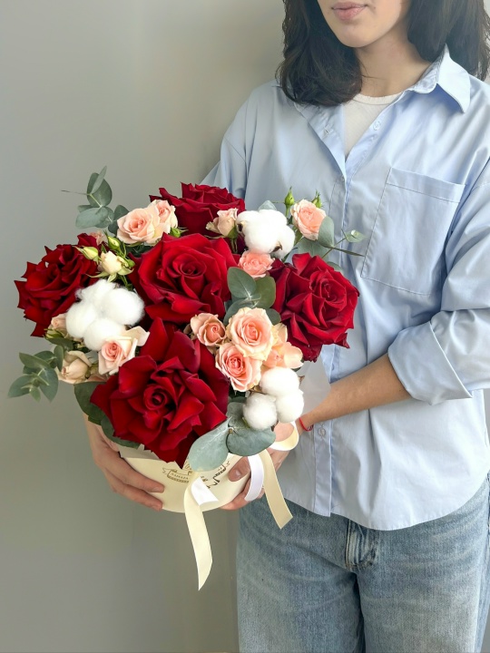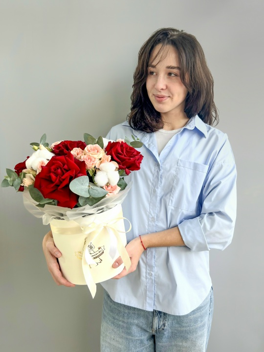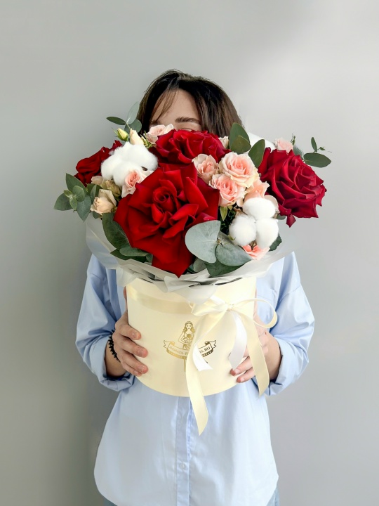 Композиция в шляпной коробке🎩🌹 В составе: Роза французская 5 шт Кустовая Роза 3 шт Хлопок 3 шт Коробка, оазис Ширина 28 см, высота 32 см В подарок: — Дизайнерская упаковка — Инструкция по уходу — Средство для продления жизни цветов 2 шт 🌷 Экспресс-доставка 🌷 Кешбэк от суммы заказа 🌷 Открытка в подарок 🌷 Фотоотчет перед отправкой