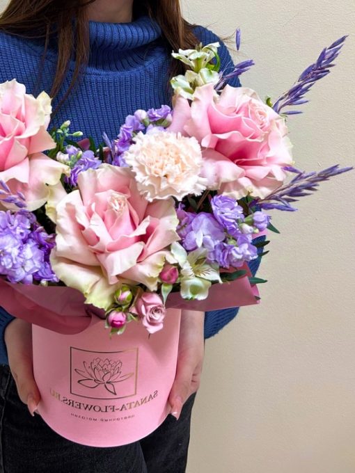 Композиция в шляпной коробке Маттиола 2 шт Французская роза 3 шт Гвоздика 2 шт Альстромерия 2 шт Кустовая Роза 1 шт Фисташка Колоски Оазис , кробка В подарок: – Дизайнерская упаковка – Инструкция по уходу – Средство для продления жизни цветов 2 шт 🌷 Экспресс-доставка 🌷 Кешбэк от суммы заказа 🌷 Открытка в подарок