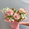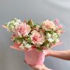 Композиция в шляпной коробке В составе: Маттиола 3 шт Французская роза 3 шт Гвоздика 2 шт Альстромерия 2 шт Кустовая Роза 1 шт Фисташка Колоски Оазис , кробка В подарок: – Дизайнерская упаковка – Инструкция по уходу – Средство для продления жизни цветов 2 шт 🌷 Экспресс-доставка 🌷 Кешбэк от суммы заказа 🌷 Открытка в подарок 🌷 Фотоотчет перед отправкой