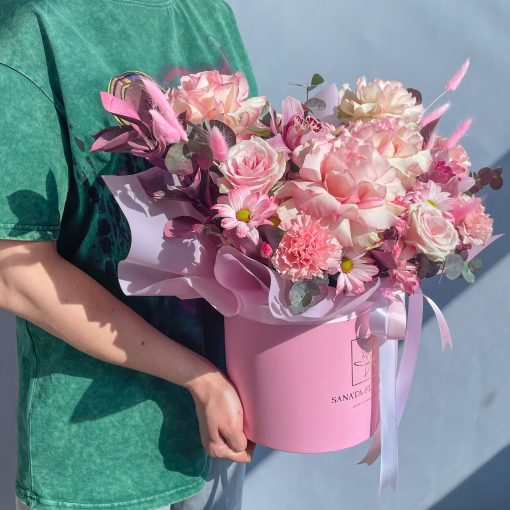 Композиция в шляпной коробке Ширина 50 см, длина 35 см