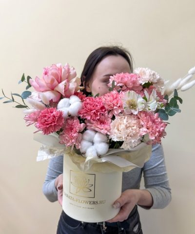 Композиция в шляпной коробке Чистая любовь