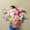 Авторская композиция в шляпной коробке с французской розой и диантусом🌺