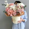 Композиция в шляпной коробке с французскойрозой и альстромерией
