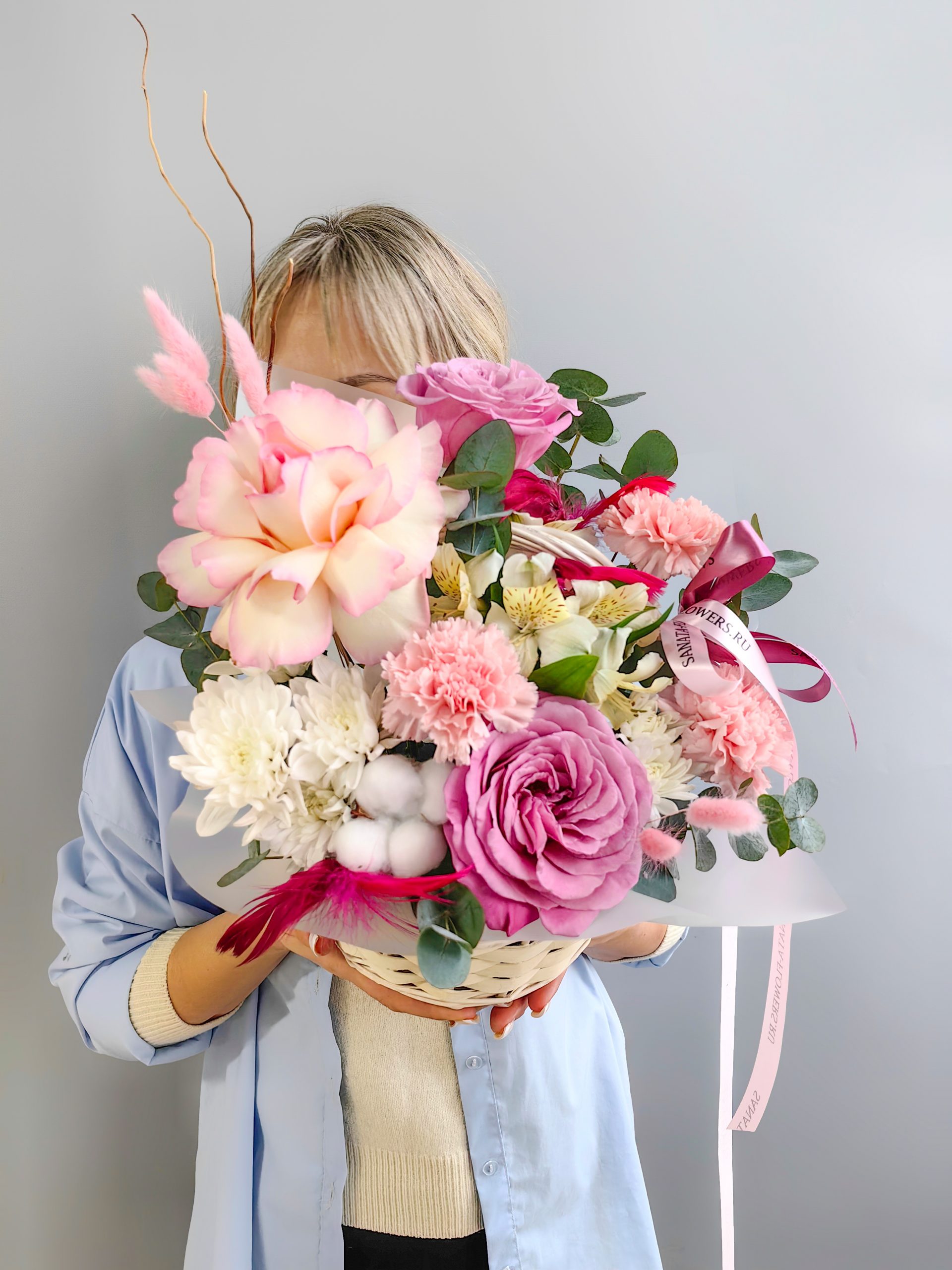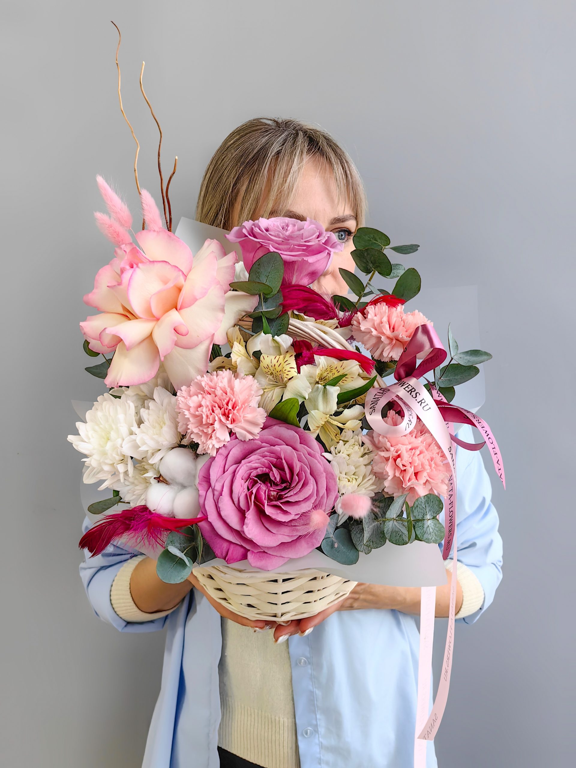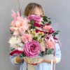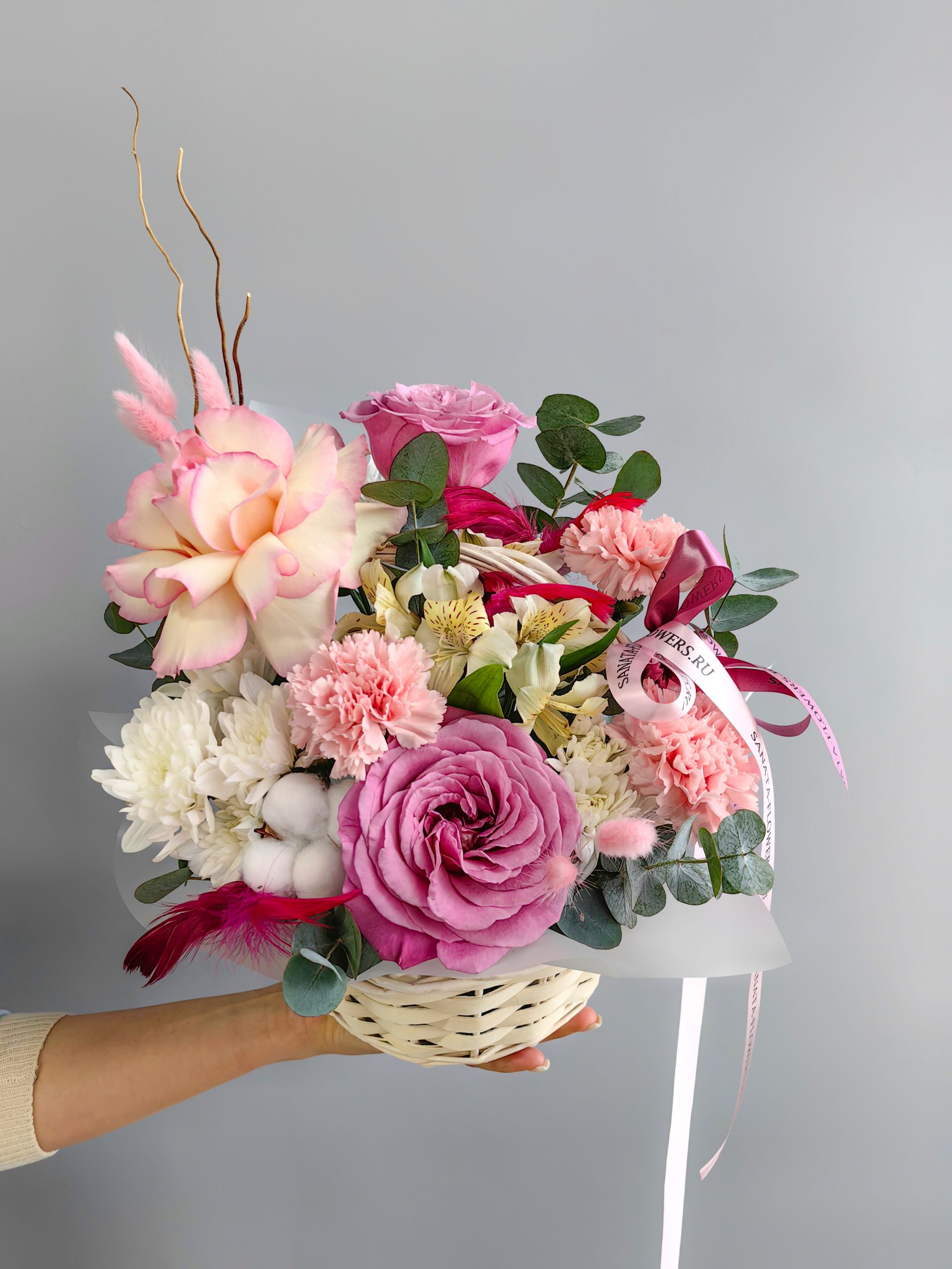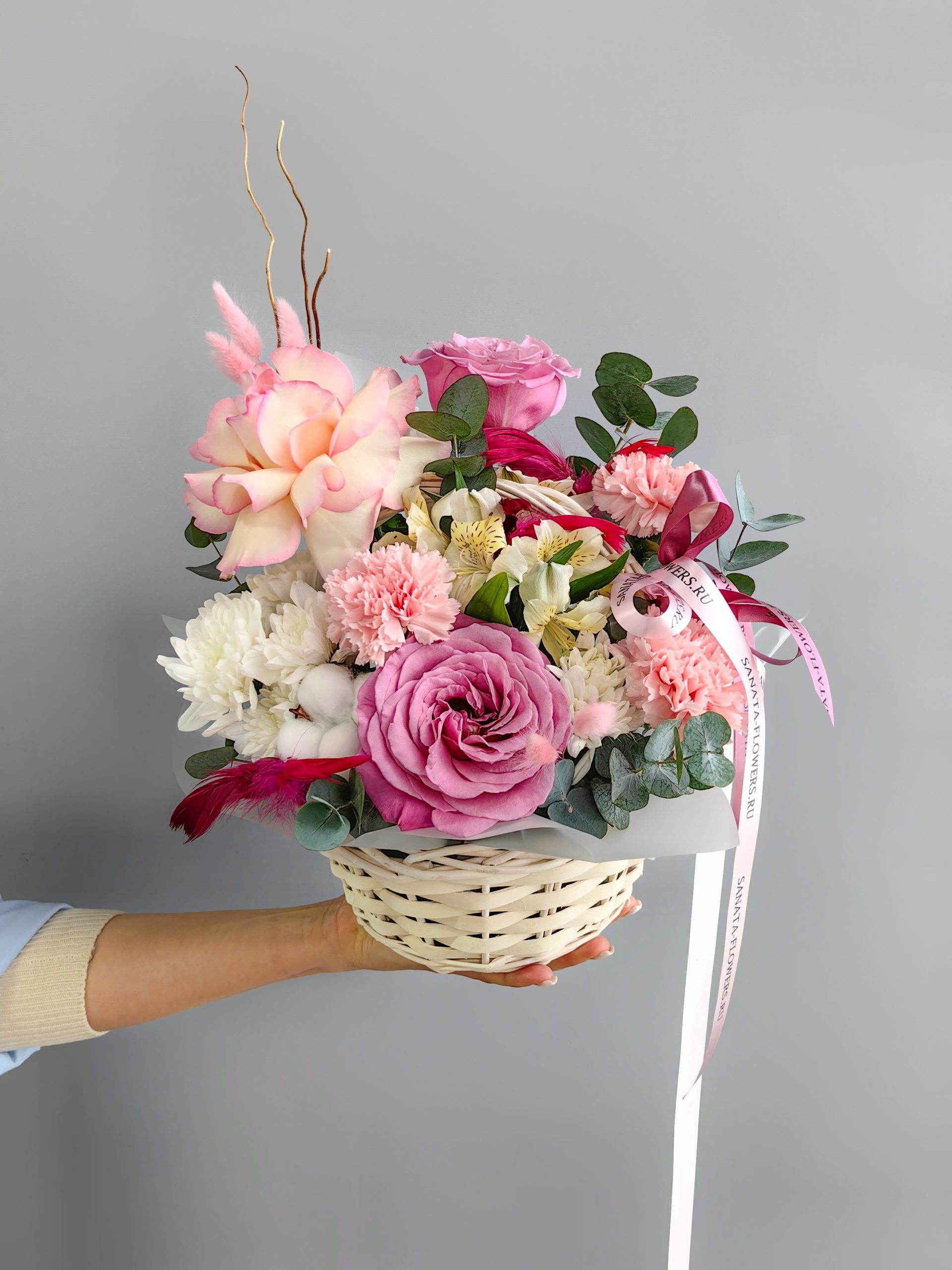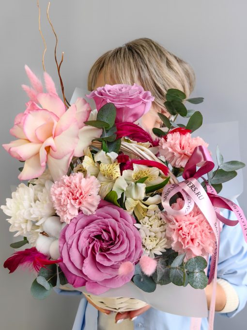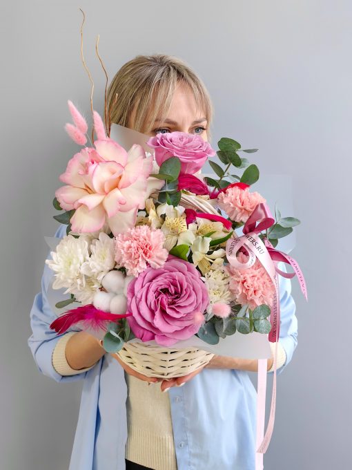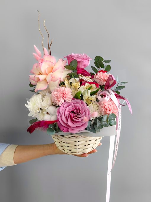 Корзина сборная с розами и диантусами