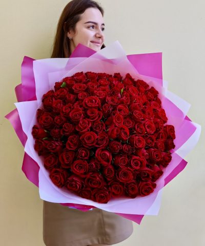 кустовая роза 2шт 4 альстромерии 5 гвоздик 5 лагурус эвкалипт упаковка ширина 30см высота 40см