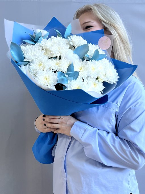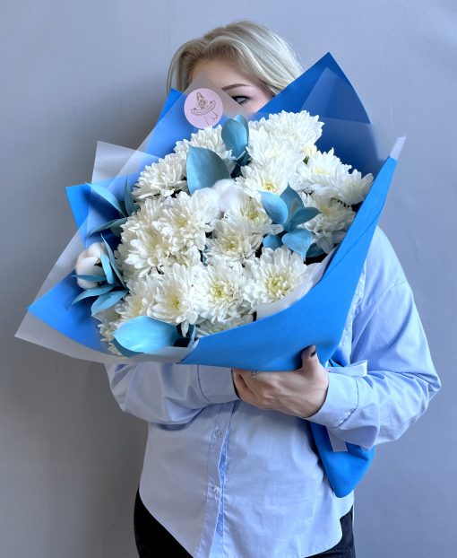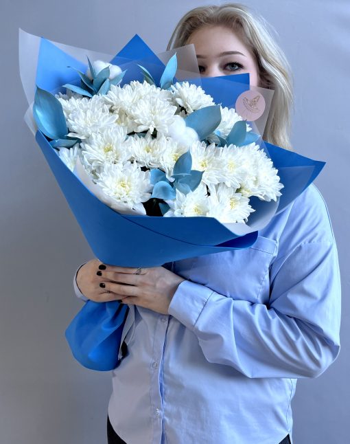 7 махровых хризантем 6 рускус упаковка 2 хлопка 30см ширина 40см высота