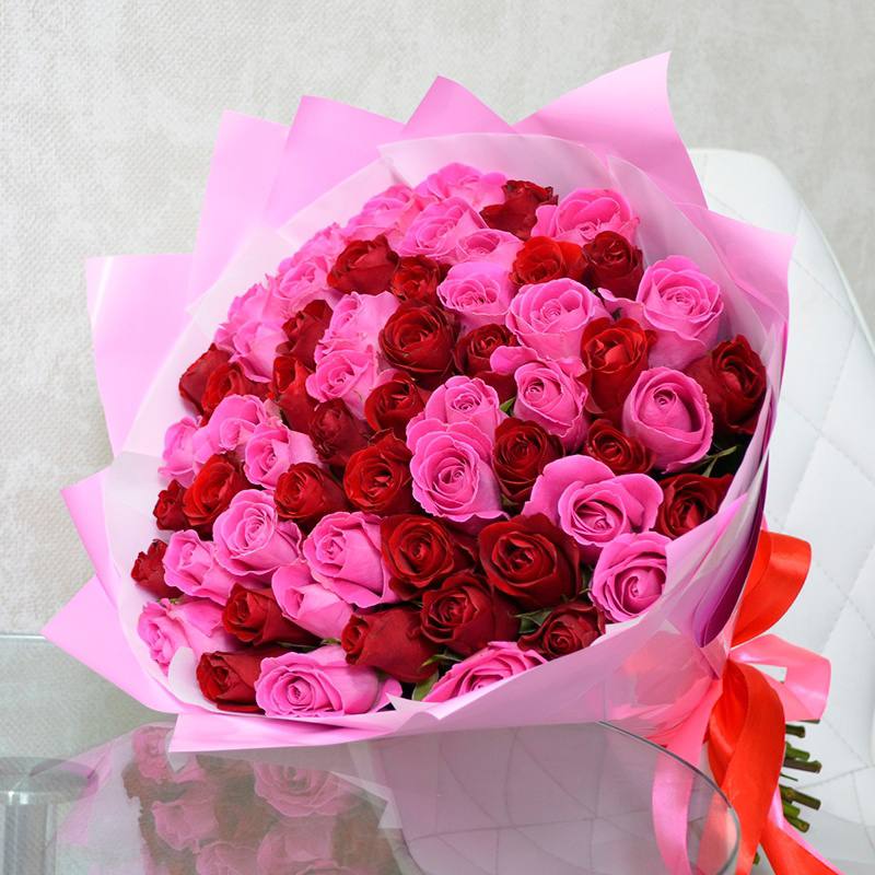 51 розовые и красные розы