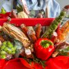 Съедобная композиция в деревянном лотке с разнообразными вкусностями станет отличным подарком мужчине на 23 февраля!