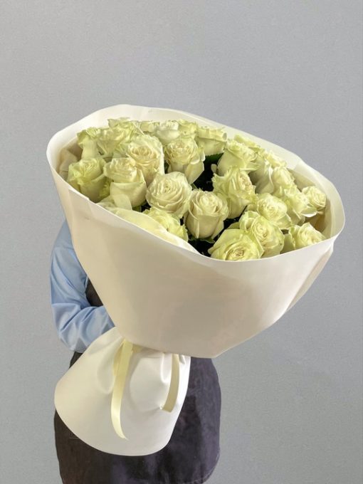 Букет из 29 белых роз 60см🌹 В составе: Роза Эквадор белая 35 шт Упаковка В подарок: – Дизайнерская упаковка – Инструкция по уходу – Средство для продления жизни цветов 2 шт 🌷 Экспресс-доставка 🌷 Кешбэк от суммы заказа 🌷 Открытка в подарок 🌷 Фотоотчет перед отправкой