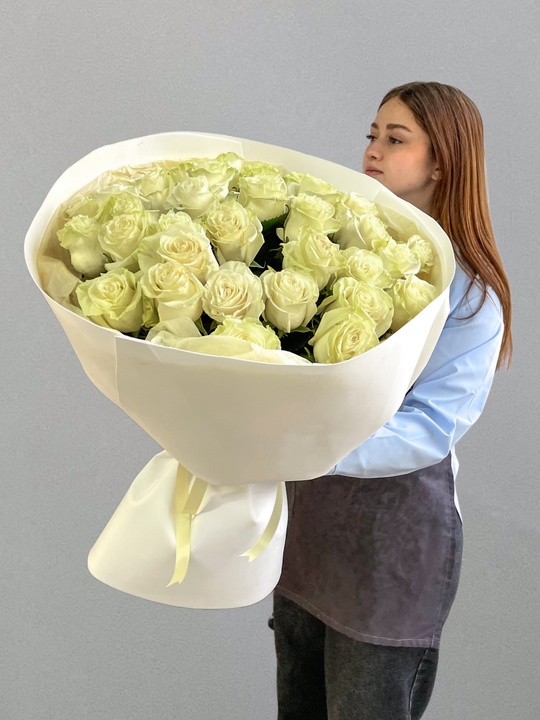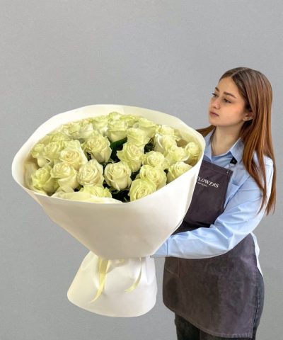 Букет из 29 белых роз 60см🌹 В составе: Роза Эквадор белая 35 шт Упаковка В подарок: — Дизайнерская упаковка — Инструкция по уходу — Средство для продления жизни цветов 2 шт 🌷 Экспресс-доставка 🌷 Кешбэк от суммы заказа 🌷 Открытка в подарок 🌷 Фотоотчет перед отправкой