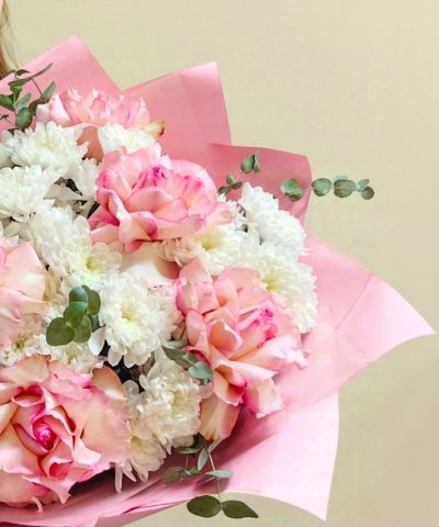 Нежный розовый букет с французской розой и хризантемой