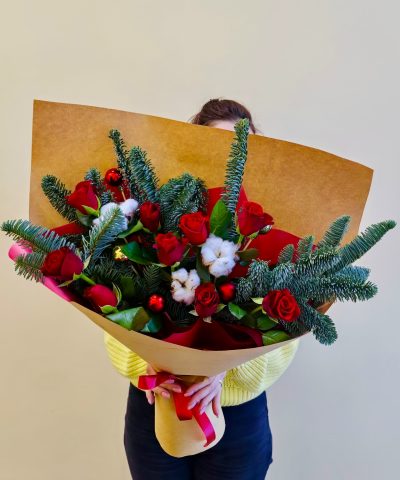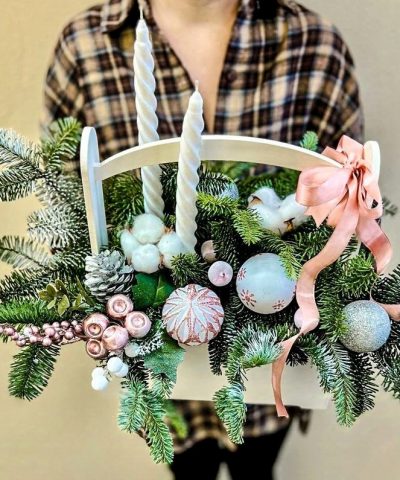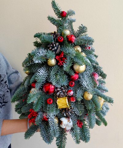 Новогодняя композиция в красном цвете с живой голландской ёлкой Нобилис🌲🎅 Размеры: ширина 21см, длина 24см Небольшая композиция в деревянном ящике с разнообразным декором: шишки, искуственные ягодки, ёлочные шары разных размеров и свеча! Композиция станет отличным подарком на Новый год для ваших близких🎄🎁 Можем собрать в другом цвете и с декором на ваш вкус.