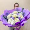 Букет из французской розы и хризантемы в стильной авторской упаковке💜